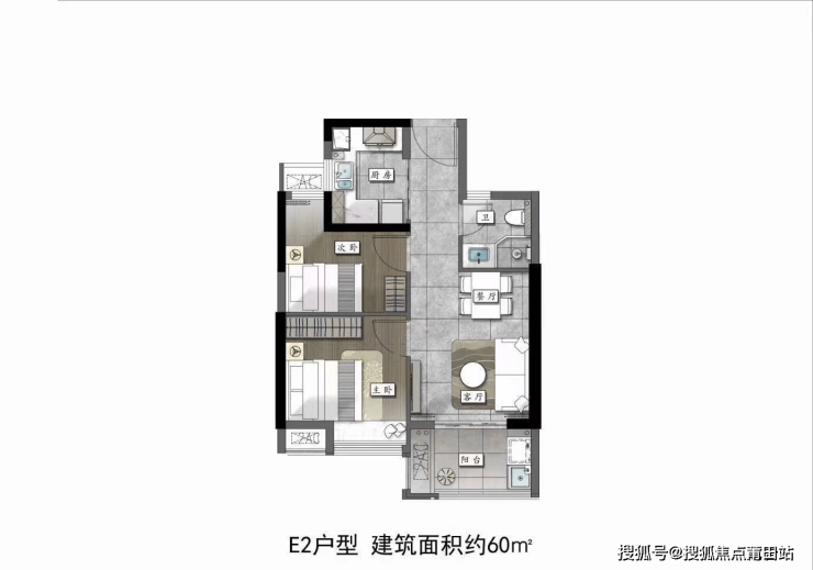 60平两房一卫一厅,户型方正,户户采光,南北通透