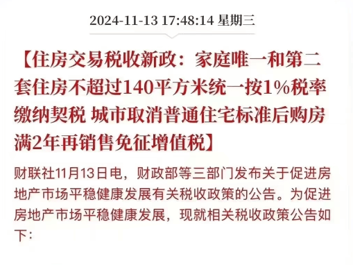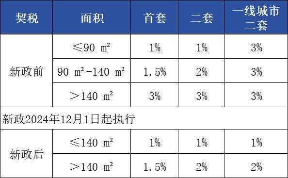 契税减征新标准从2024年12月1日起执行: