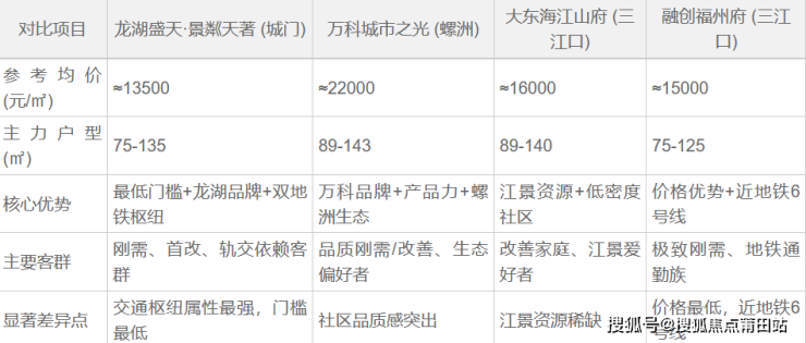 我们选取同属仓山南片(城门、螺洲、三江口)的3个热门新盘进行关键指标对比:
