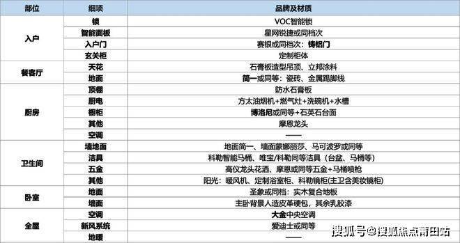 装修方面,室内配置品牌常规,与市面上同等价位的项目相当。其中,在空调、橱柜、卫浴五金和地面瓷砖的品牌有所升级,在厨房五金、及厨房电器等配置上有所精简。