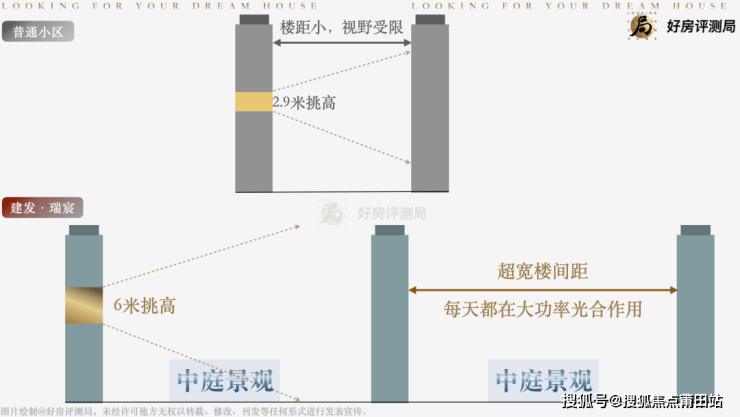 超80米楼间距,是普通社区的1.6倍,低楼层无忧采光,高楼层看得更远。