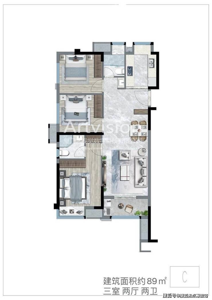 建面约89㎡户型图