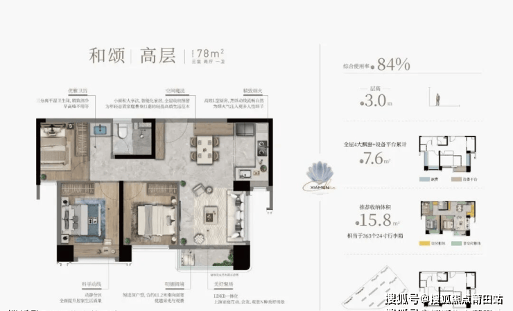 •78㎡刚需首选:通过飘窗、阳台赠送,实际使用能到 84%,还做了三卧室朝南,书房后期能改成婴儿房,对小家庭太友好;