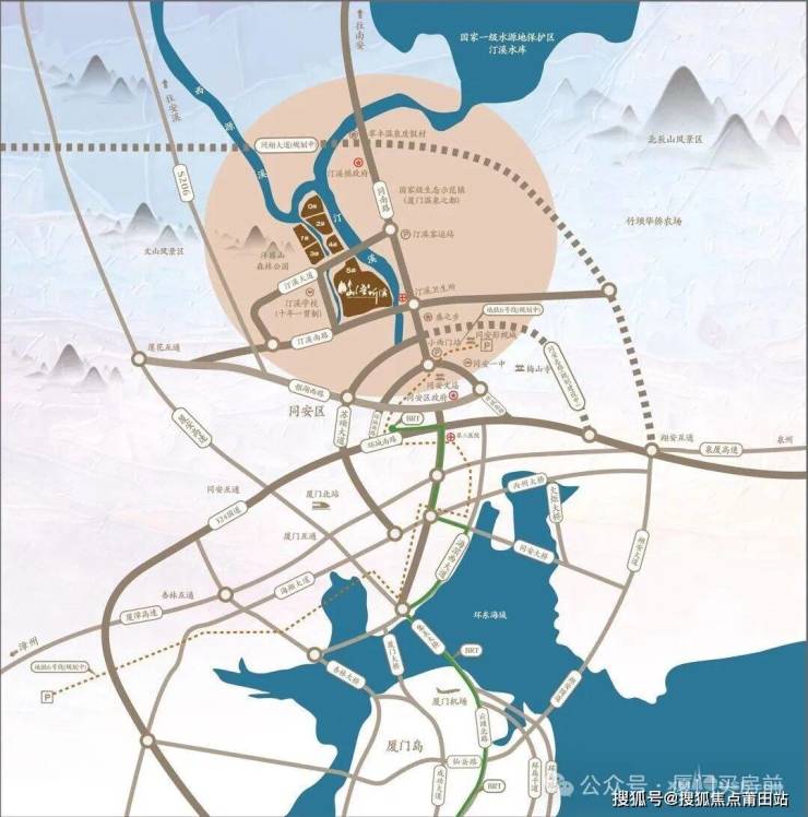 项目位于厦门首席养生度假胜地——中国首批特色小镇,汀溪特色康养度假小镇。项目约300m就有汀溪学校,直线距离1km规划了厦门实验中学新校区,家门口配套了500㎡连锁品牌生鲜超市、约600㎡生态泳池、温泉泡池,可以在厦门享受别样的生活范本。项目目前在售产品包含了51-109㎡精装温泉公寓、82-150㎡毛坯高层、220-350㎡温泉真别墅,都是实景现房,即买即可入住。