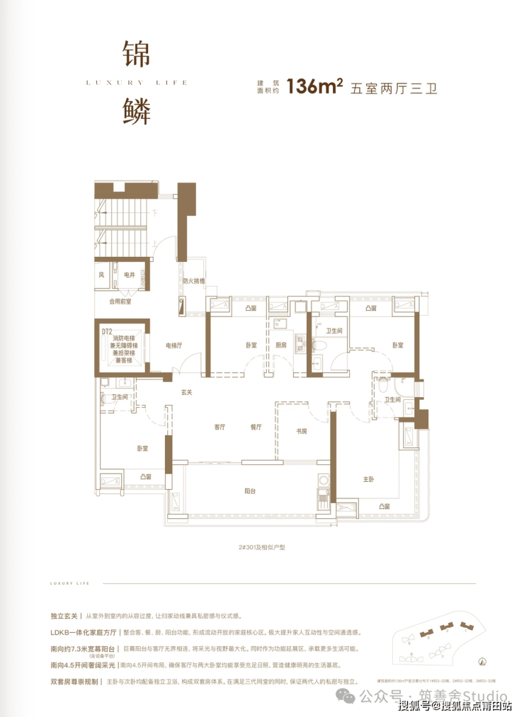 建面约136㎡户型,以4.5开间、双套卧、三卫的奢阔格局,重新定义居住体验。约14.2米南向四开间,让阳光与风景无界渗透;LDKB大横厅与南向约7.3米宽幕阳台(含设备平台)无缝联动,轻松切换家族欢聚与社交雅集的多元场景。约24.11㎡行政级主卧套房,270°广角飘窗揽尽江风园景,私享静谧与开阔;多功能“X空间”房,随心切换书房、影音室、儿童乐园等多重身份,为未来生活注入无限可能。