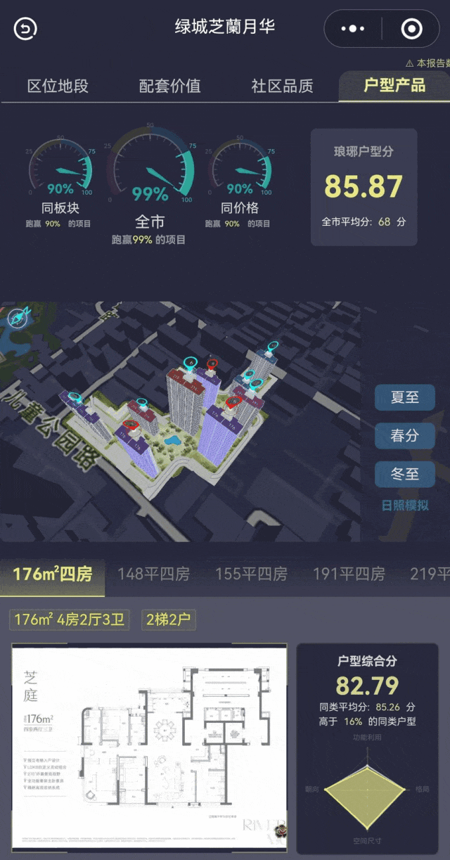 项目规划产品面积148-155-176-191-219平的改善型四房及五房,其中148平四房分布在9#、10#楼位于小区北部,2梯2户;155平四房分布在2#楼位于小区南部,牵手楼2梯2户;176平四房产品分布在1#、5#楼位于小区东侧看中庭游泳池,2梯2户;219平五房分布在3#、6#楼位于小区中庭,2梯2户。
