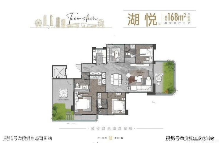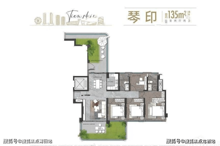 定制私人空中花园,层层叠翠,可打造茶室书房/私人高尔夫球场等爱好场域。