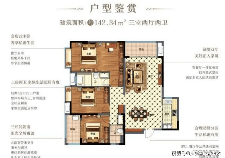 3 房 2 厅 2 卫 2 阳台,约 142.34 ㎡