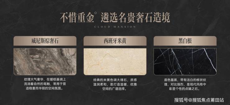 甄选威尼斯棕、西班牙米黄、黑白根等