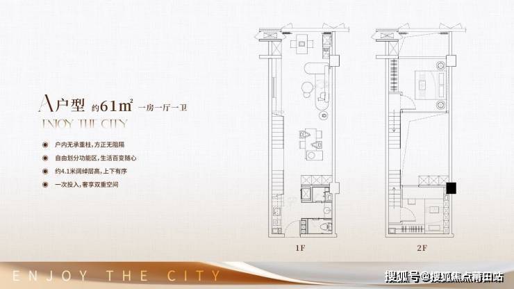 空间:小面积、大功能,4.1米阔绰层高,空间灵动百变,可自住亦可投资