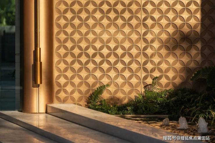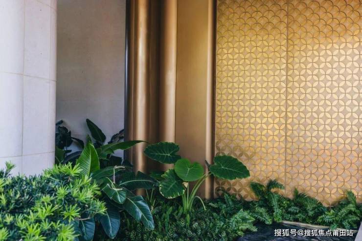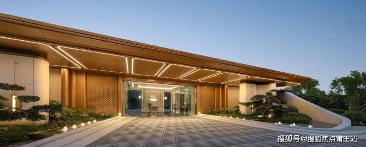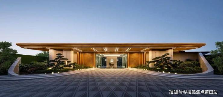 项目从入口便彰显高端质感:中轴对称的门廊式大门,采用白+香槟金经典色系,搭配罗汉松与石材景墙,营造出豪宅级的酒店式仪式感,一眼便能感受到社区的高端定位。