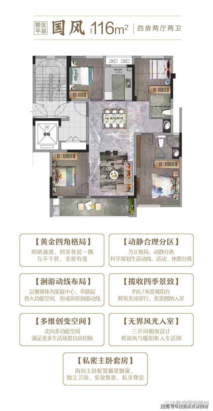 鹏湃国公馆在户型设计上同样展现了其对居住品质的极致追求。项目推出了多种户型,以满足不同家庭结构和居住需求。其中,116㎡的四房两厅两卫户型为高层中间套,南北朝向,采光通风俱佳。该户型布局合理,四间卧室互不干扰,保证了家庭成员的隐私。双联阳台设计,尤其是南向约6.7米的阔尺阳台,不仅提供了充足的休闲空间,更将室外美景引入室内,实现了美景与生活的完美交融。客餐厅作为家庭中心,串联起各大功能区,形成了环形洄游动线,使得归家活动动线短,动静分区合理,大大提升了居家生活体验。此外,南向瞰景飘窗和独立卫浴的设计,更是为业主提供了尊贵的居住体验。