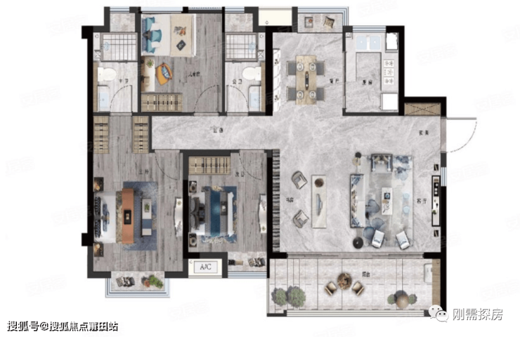 137平米:4+1房两厅两卫,布局与119户型一致,仅仅是增加了北侧一个房间,不过137平米的产品,已经接近刚改起步,未来配合较高的单价,市场接受度依然需要评估。