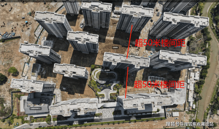 左海望悦是白湖亭四大金刚中第一个登场,也是片区另一个大盘。它充分发挥大社区的优势:包括设置3000㎡架空层悦life邻里交互空间,以及实地考察124㎡/148㎡样板房所在的6#,前后都是超50米、令人震撼的楼间距(超1:1比例)。