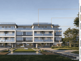 在芝澜月华,绿城引入全新“曲面屏”设计,以曲线柔化建筑边框,并在建筑表情融入灰绿色陶板线条。