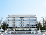 建筑立面设计以简约、时尚为主基调,融合东方雅韵与现代美感。以米黄色石材为底座,多彩漆面墙、香槟色铝板顶部,通透采光,尽显建筑的豪华、 尊贵气质。