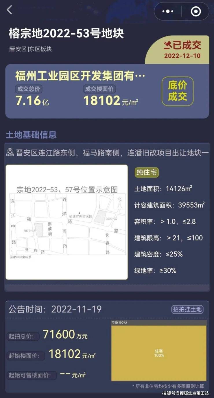 福州工业园区开发集团有限公司2022年12月7.16亿竞得榕宗地2022-53号地块,楼面价18102元/㎡,底价成交。地块方正,地块内部无古建、宗祠等影响。