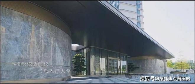 约40米的超宽社区大门,顶棚为弧形铝板、搭配弧形大理石墙面与弧形弯钢玻璃,业主每次回家都是身份的彰显。