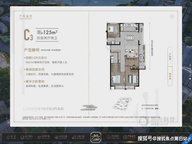 楼盘户型: 3种户型,建面:100-143㎡ 4室2厅2卫 (建面:125)
