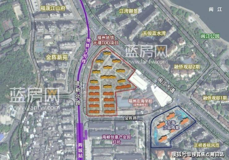 福州元璟TOD项目位于仓山区建新北路与闽江大道交叉口南侧,周边配套情况如下: