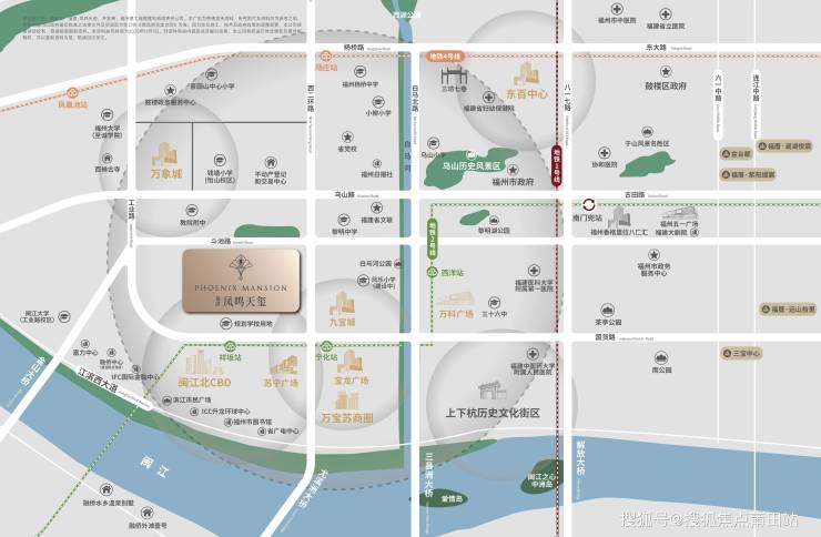 福厝凤鸣天玺最突出的优势在于其无可复制的黄金地段。项目位于鼓台交界处的传统市中心,享受即时繁华与便利,避免了新城发展的漫长等待期。 交通便利性十分显著:距离地铁4号线凤凰池站约500米(2025年已全线贯通),步行可达;距离地铁2号线宁化站约600米,形成“双地铁交汇”的交通优势。 周边路网发达,毗邻西二环快速路,可快速通达鼓楼、金山、仓山等区域。