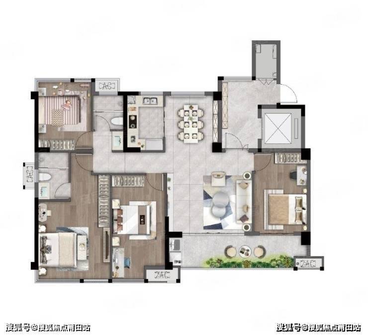 3室2厅2卫1厨, 107平米
