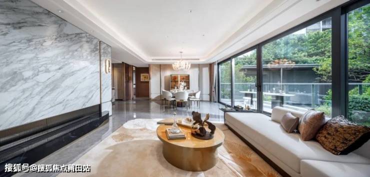 福州国贸天琴樾在第六、第十两栋相近且日照通风绝佳的楼栋中置入封闭式泛会所化架空层,将会客与私享功能分设,以墙体+玻璃的立面结构,强调出空间对内及对外的私密性与功能性,在互动、联通中实现中庭景观与室内空间的无界交融。