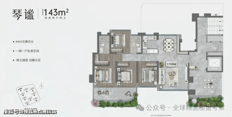 在餐客厅空间尺度上,天琴樾超80㎡宴会级甲板式花园会客厅亮眼十足,餐客厨院一体化开放式方厅,270°宽幕落地观景,近9米超幅进深,全通透超宽门窗开阔视野,每个空间一步式联动,减少动线复杂,“端厅+空中花园”最大化人与人、人与空间互动,符合福州三代同堂的聚居动线。