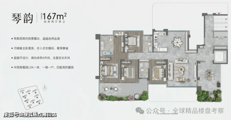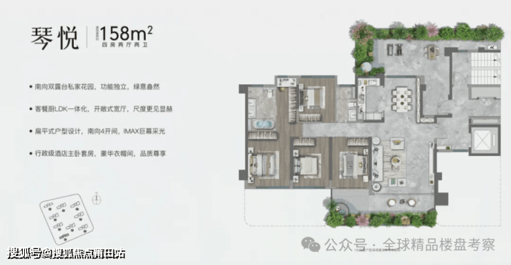 第二维:私家空中花园,全家庭的乐活所在。作为第四代住宅的高定范本,国贸天琴樾通过错落式的双阳台设计,让全家庭不仅可以扮靓自家的空中花园,更实现了宅景的融通。
