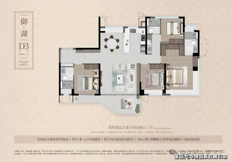 •宸启瑞湖主力户型有 244平 289平 366平等4室布局;