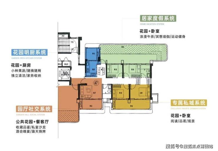 创新一:墅级尺度——区别于当下四代宅的LDKBG(餐客厨花园阳台),而是直接升级为LDKGY(餐客厨花园庭院),实现从“阳台”到“庭院”的升级;