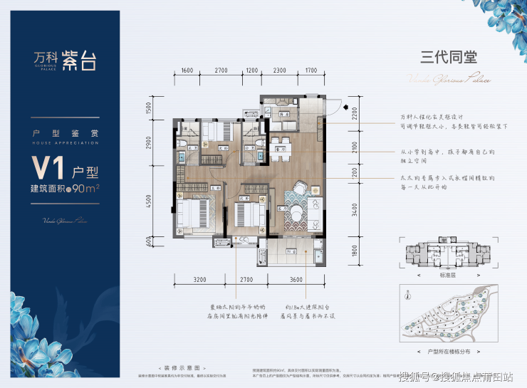 建面约90㎡平层舒适三房
