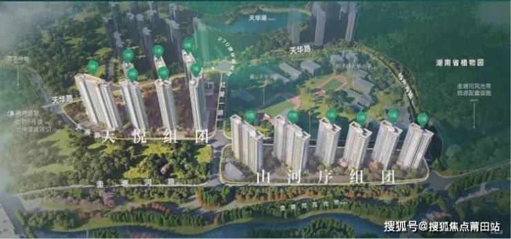 项目背靠天际岭植物园,一线临圭塘河+风光带!瞰山揽河!这年头,在长沙主城区,同时拥有山-河-公园资源,且多面瞰景的,中建翡翠天序算头一份!