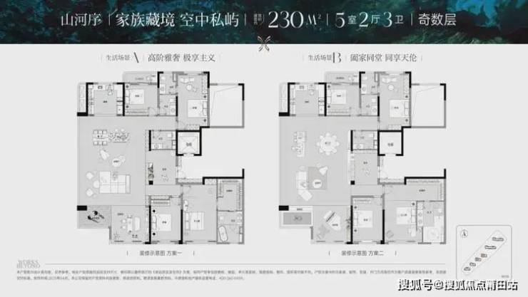 二期天河序更是升级之作,两梯两户纯板楼,相当于类私梯入户。起步户型约185㎡,最大约230㎡,纯粹改善大平层,品质高端、圈层纯粹。