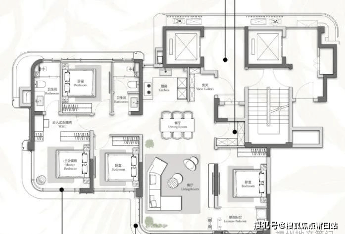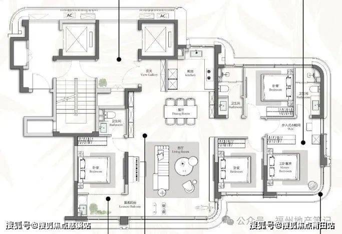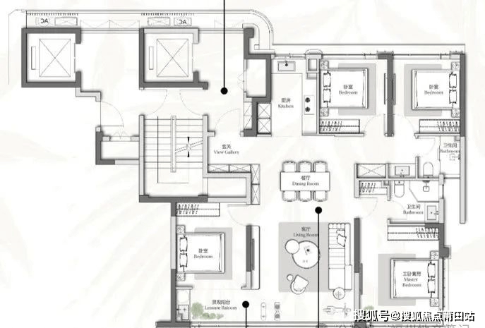 类四叶草户型虽节省过道面积但导致餐厅在户型中心,交叉动线。