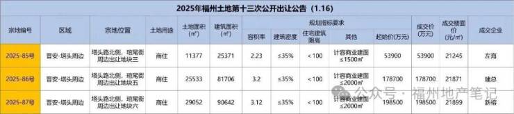 2025年福州第十三轮土拍供应3宗地,本土国企再度兜底成交。其中: