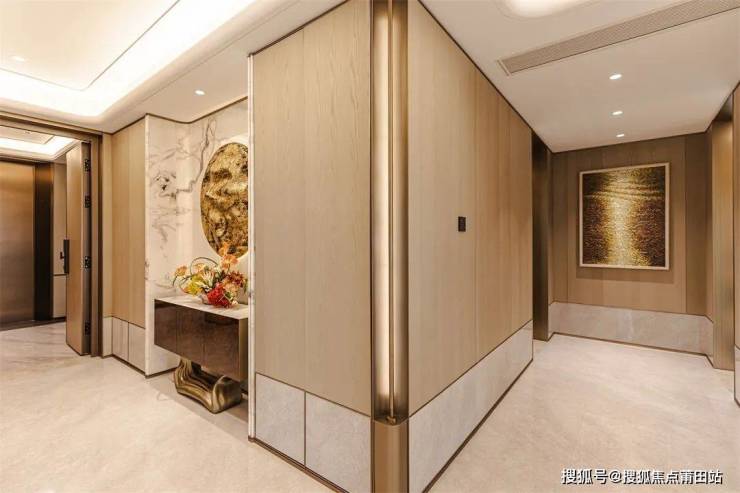玄关柜的精致不止体现在收纳分区的布局,结构与美感也是必备要素。入户处的艺术玄关设计,在空间尺度、材质使用、色彩搭配上注重仪式感和雅奢氛围的营造,满足日常收纳需求的同时,又保持了空间的完整和连贯性。