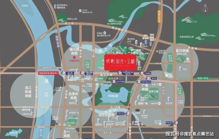 【项目地址】:长沙市·开福区福元路与山月路交汇处(导航:保利和光尘樾)
