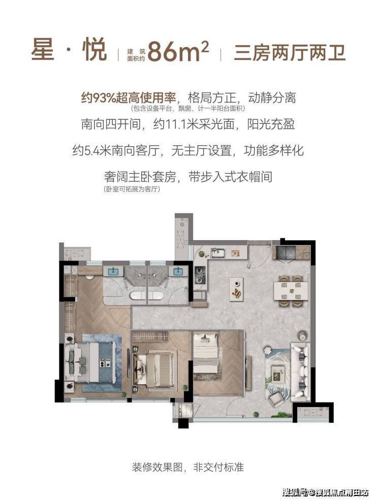 相较于北源云筑89平米做端头的产品,这个面积大了约10平米的户型,可以看做是之前的plus版。