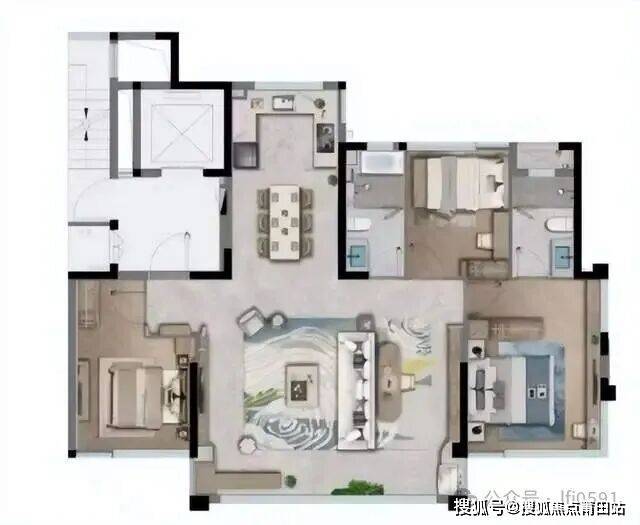 以前这种面积段的基本都是两房朝南,一房朝北,朝北的房间采光有一定的影响,这种三房皆为南向的户型,之前没接触过。