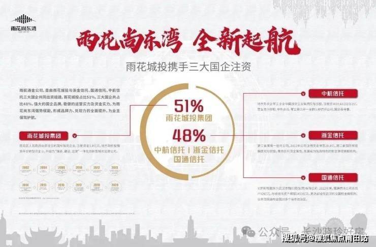 雨航通金公司,是由雨花城投与浙金信托、国通信托、中航信托三大国企共同出资组建,雨花城投占比51%,三大国企共占比48%。强大的国企品牌加持,稳健的运营实力及资金实力,为雨花尚东湾强势赋能,形成品牌力、兑现力的全面提升,为业主保驾护航。