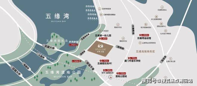 交通配套:周边直线3km范围内有7个地铁站(湿地公园、钟宅、五通、五缘湾、两岸金融中心、湖里创新园、东宅),轨道交通发达,距离最近的地铁站是湿地公园。周边直线1km内有14个公交站,距离最近的五缘湾音乐岛站仅有54m,周边公共交通极为便捷。