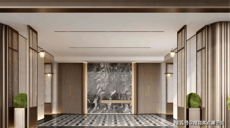 ◆ 奢境 / 筑奢质公区 以星光礼遇>“奢金”双入户大堂:定制岩板背景搭配艺术拼花地面,以雅奢美学对话圈层身份。