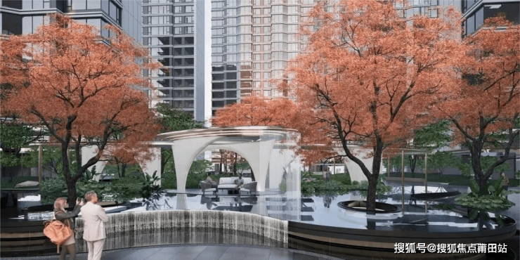 二序:镜水回廊约500㎡叠瀑镜水+云影回廊+城市浮岛,构筑超2000㎡多层级景观序列。