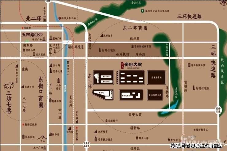 商业巨擘: 约150万方东二环泰禾广场超级商业配套,汇集凯宾斯基酒店、铂尔曼酒店、智选假日酒店三大国际酒店 生态公园: 金鸡山公园、牛岗山公园、鹤林生态公园、晋安湖公园 建筑风格